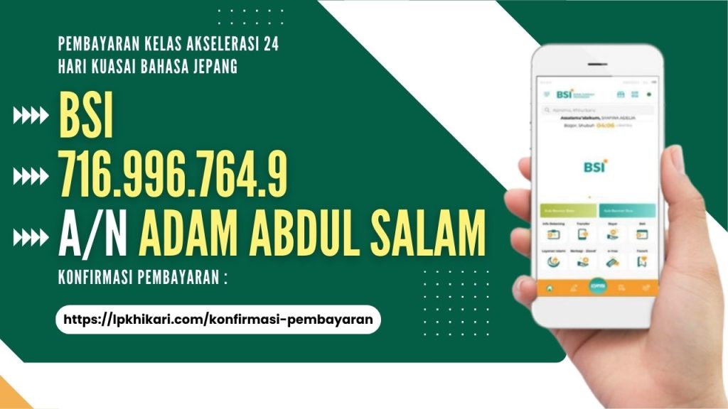 Silahkan lakukan pembayaran untuk mengikuti kelas intensif akselerasi 24 hari kuasai bahasa Jepang. Pembayaran dapat dilakukan melalui transfer ke :