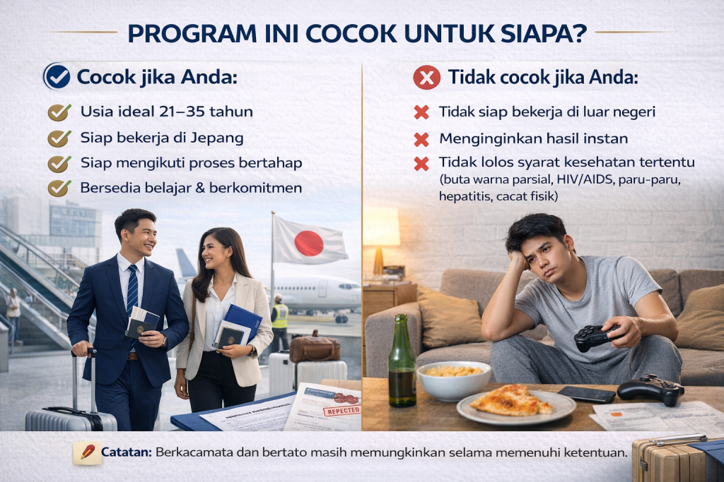 Banyak orang gagal bekerja ke Jepang bukan karena tidak mampu, tapi karena tidak memahami alur, persyaratan, dan proses yang benar. Mulai dari bahasa, sertifikasi, wawancara, hingga dokumen imigrasi. Di sinilah pendampingan menjadi penting.